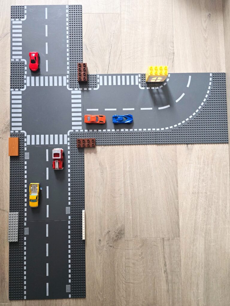 Lego nie wymieniałam do tej pory, bo to oczywiście znają wszyscy. Ale Lego płytki ulice i skrzyżowania są genialne i dobre dla dzieci, zanim osiągną wiek zabawy małymi klockami Lego. A nie wszyscy wiedzą o ich istnieniu. U nas te płytki cieszyły się wielką popularnością w wieku około 2-7 lat. Dzieci bardzo chętnie budowały sobie z nich drogę i jeździły po nich autkami. Płytki można połączyć albo klasycznymi klockami Lego albo Lego Dublo. A potem, kiedy dzieci zaczynają bawić się Lego, można nimi połączyć różne budynki miasta. Polecam również rozejrzeć się za używanymi płytkami albo tańszymi zamiennikami, bo dobrze jest mieć kilka takich płytek, by dziecko mogło budować różne skrzyżowania i kombinacje ulic.